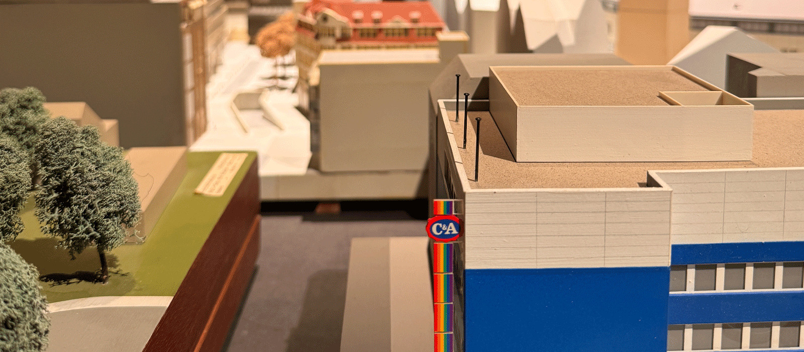 In Munich, the focus was on a curated selection of over one hundred architectural models from the Draiflessen Collection. Of particular note were the C&A department stores, which were designed by the Essen-based architectural firm Nattler (formerly E. A. Gärtner/Ric Stiens until 1990, and Ric Stiens/Heinz Nattler until 1994). Decades of collaboration with C&A since the 1950s have resulted in over 170 department stores – buildings that have shaped cityscapes and written a chapter in architectural and corporate history.