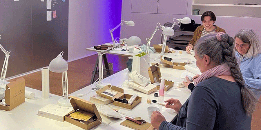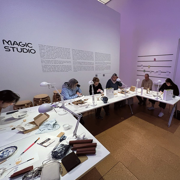 November 6, 2025: Workshop for adults: Kan'i Kintsugi – the art of gilding breaks Kintsugi is a traditional Japanese repair technique in which the breaks in broken ceramics are not hidden, but deliberately highlighted and remain visible as part of the object's history. Philosophical principles, including acceptance of transience and imperfection, appreciation of scars and breaks as signs of a life lived, and transformation through vulnerability, become clearly perceptible through the repaired object. For the participants, some of whom had traveled a long way to attend, their objects became “more beautiful and meaningful” than before. This workshop for adults took place in the studio on the exhibition floor (Magic Studio in the MAGICAL WOMEN exhibition).
