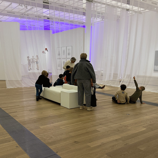 August 15, 2025: Guided tour and collage workshop ... in the exhibition ROOTED AND BRANCHED in the studio area with children and young people from the AK Asyl in Mettingen. 17 participants and group leaders were able to enjoy the exhibition despite only having rudimentary German skills. The event came about after a discussion between the Draiflessen Collection's education department and the Steinfurt media cooperative and is intended to be the start of a future series of events.