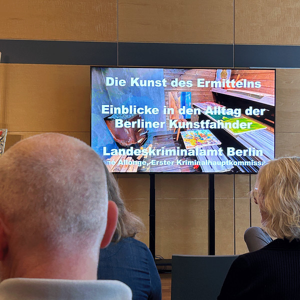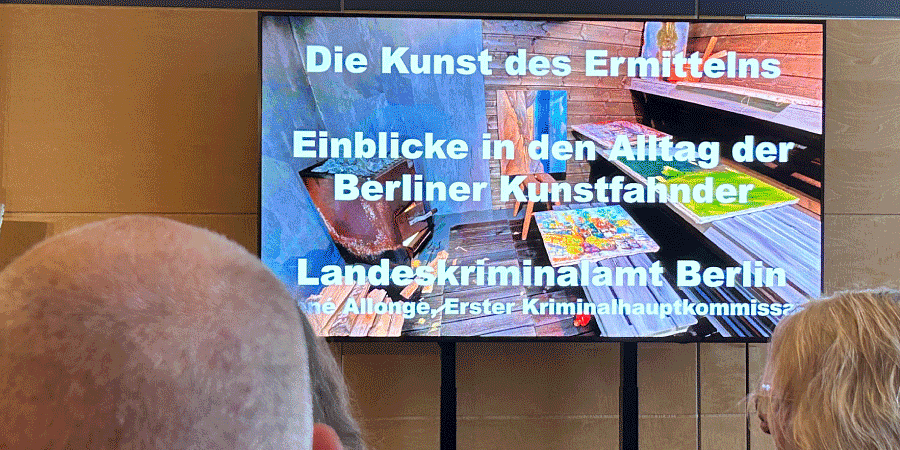 September 4, 2025: An evening dedicated to art crime with Inspector René Allonge ... as part of the exhibition BENEATH THE SURFACE. Experts estimate that up to 60 percent of the art objects offered on the art market are fakes. But how can you tell whether an object is an original or a fake? How do forgers work and how can they be tracked down? René Allonge, chief investigator for art crime at the Berlin State Criminal Police Office, reported on spectacular cases such as the theft of the “Big Maple Leaf” from the Bode Museum, which he himself was involved in solving, and at the same time demonstrated modern methods of art forensics.