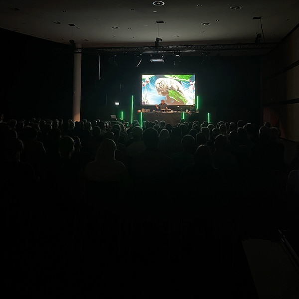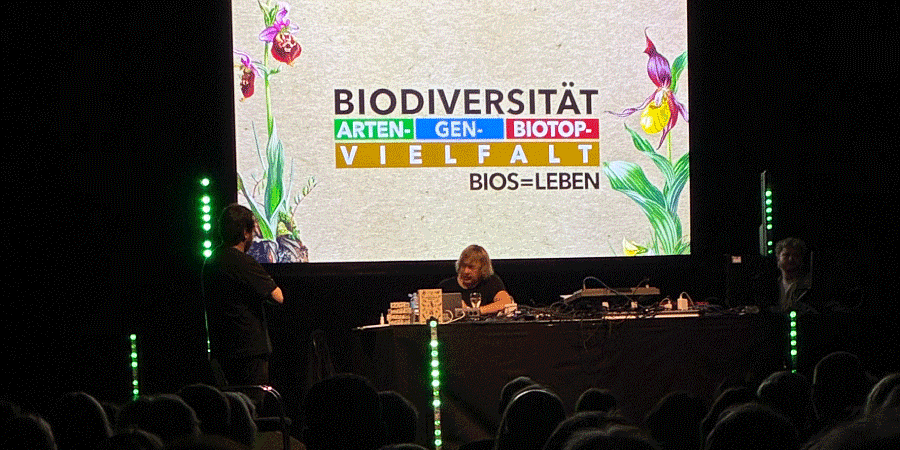 June 6, 2025: Biodiversity show with Dominik Eulberg On this evening, internationally renowned electronic DJ Dominik Eulberg took around 200 guests on a fascinating multivision journey through the nature. In his transdisciplinary show, he transported us into the wonderful world of nature right on our doorstep. He showed us insects at eye level, played bird calls on his synthesizers, and illustrated their exuberant diversity in music videos he created with renowned filmmakers. In his authentic and deeply passionate way, Eulberg sensitized us to the small wonders of the greatest artist of all: Mother Nature.