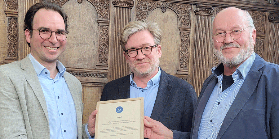 We were particularly delighted about this: From April 11 to 13, the 14th International Symposium on Minority Language Research, organized by the IGS, took place in Münster. For the first time, the award for “Best Innovative Initiatives for Preserving the Rotwelsch Dialect Cultural Form” was presented. Our exhibition CUNDA, KNÖS AND KNASPELHUTSCHE took first place!